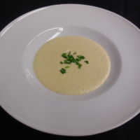 Mit Stabmixer pürieren und den Rahm zugeben mit Salz und Pfeffer abschmecken.